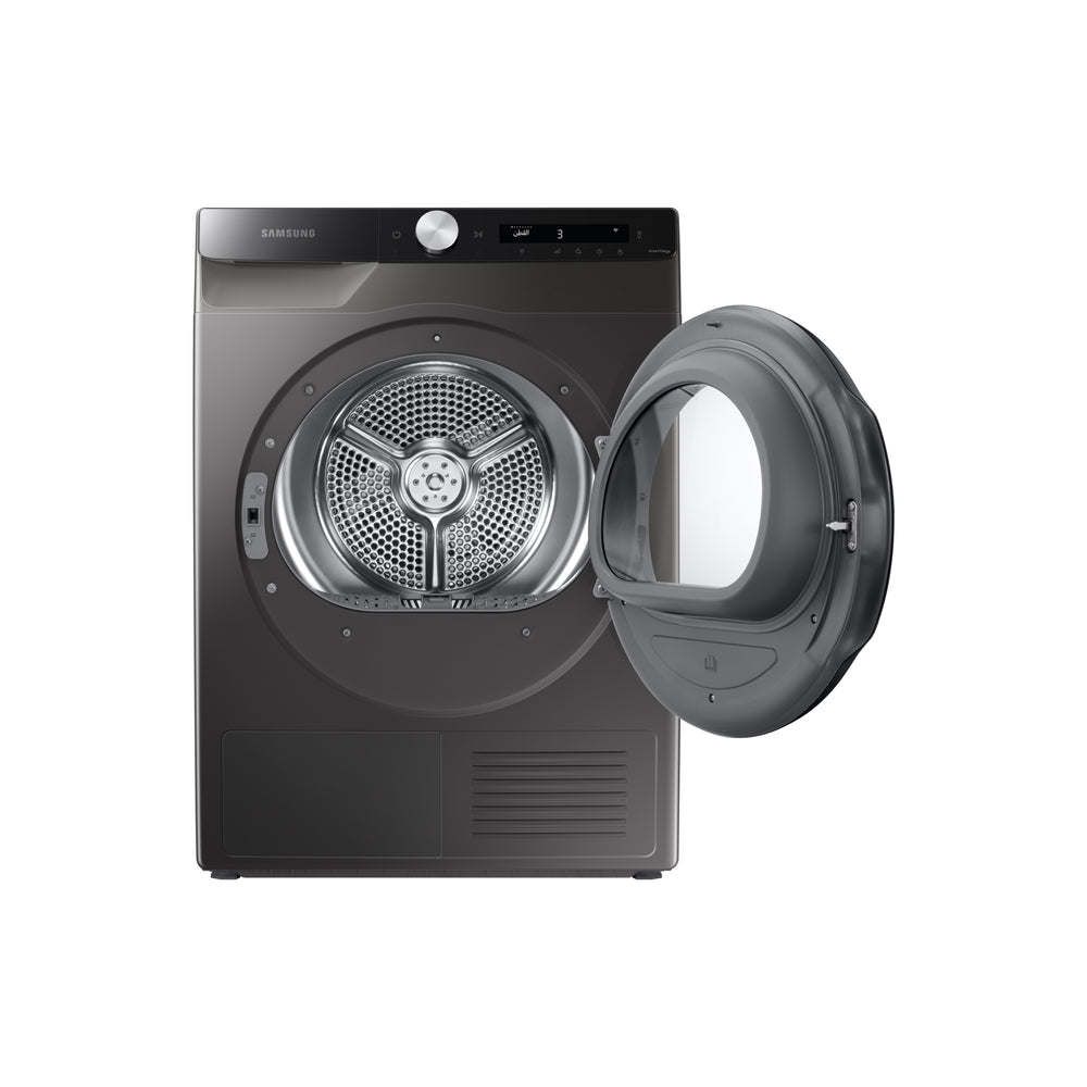 The Samsung DV80T5220AX/GU 8kg Heat Pump Dryer delivers efficient drying performance while using significantly less energy than conventional dryers. Powered by Heat Pump Technology, it dries clothes gently at lower temperatures to protect fabrics. OptimalDry™ sensors continually monitor moisture and temperature to prevent over-drying, while Hygiene Care removes bacteria and allergens from laundry. With its premium dark silver finish and user-friendly digital controls, it is an ideal addition to modern UAE homes.