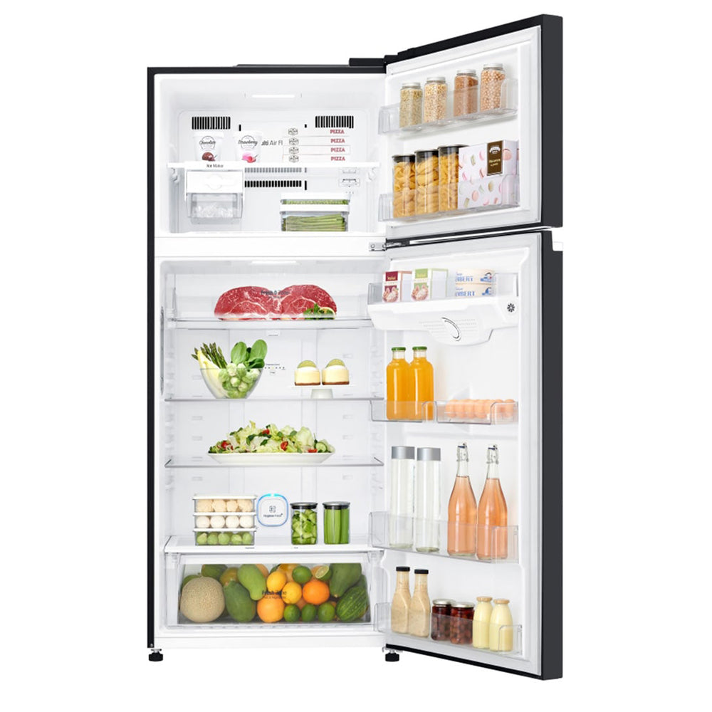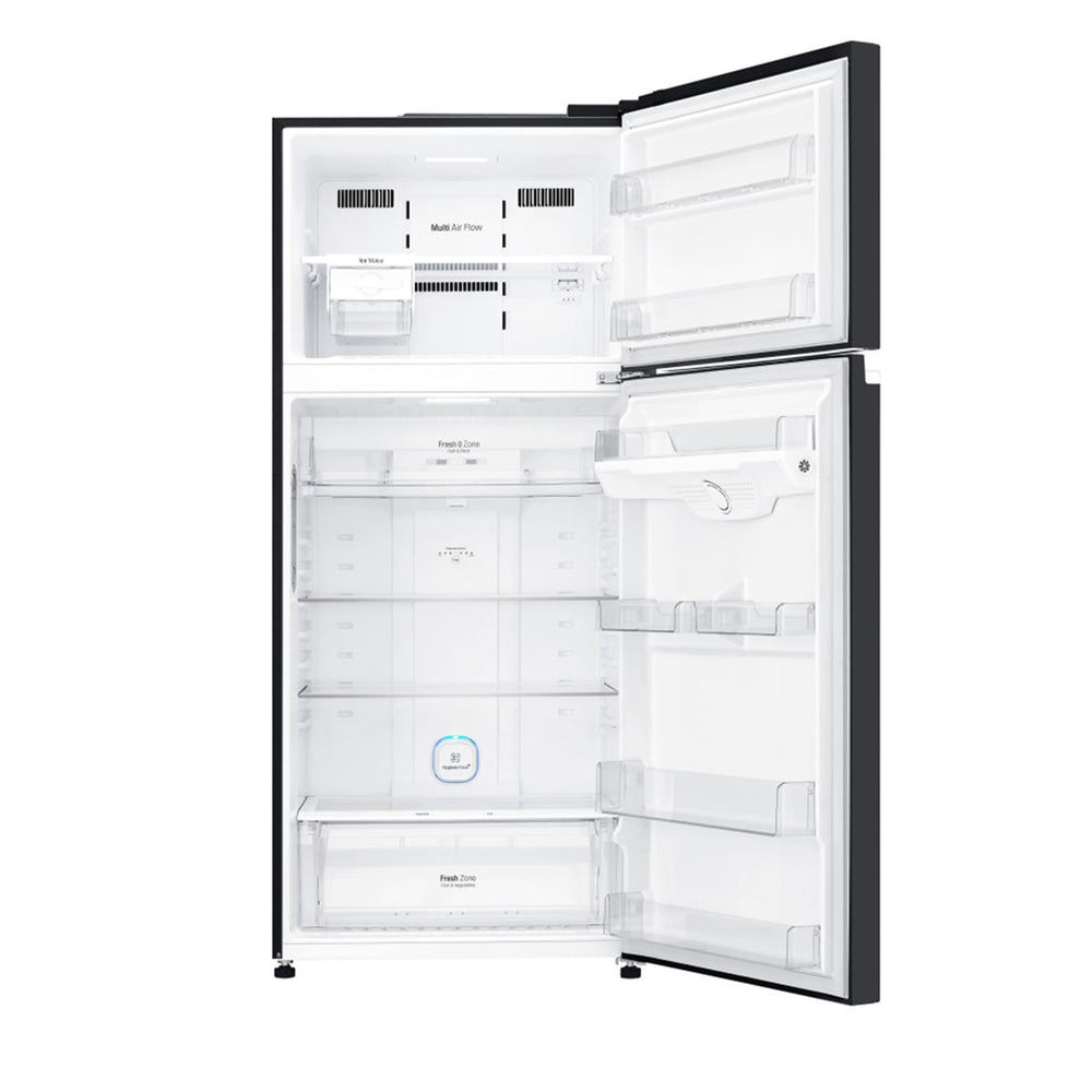 The LG LTC752SGGM Top Mount Refrigerator combines a spacious 506 L net capacity with advanced cooling technologies that help keep food fresher for longer while offering practical and user-friendly design features. LinearCooling™ and DoorCooling+™ work together to maintain even and rapid cooling throughout the fridge, while the HygieneFresh+™ air filter helps minimise odours and bacteria. The Fresh 0 Zone compartment provides near-zero storage for sensitive foods like meat and fish, making meal prep simpler. With Multi Air Flow and LED interior lighting, this refrigerator delivers efficient performance and visibility for everyday kitchen use.