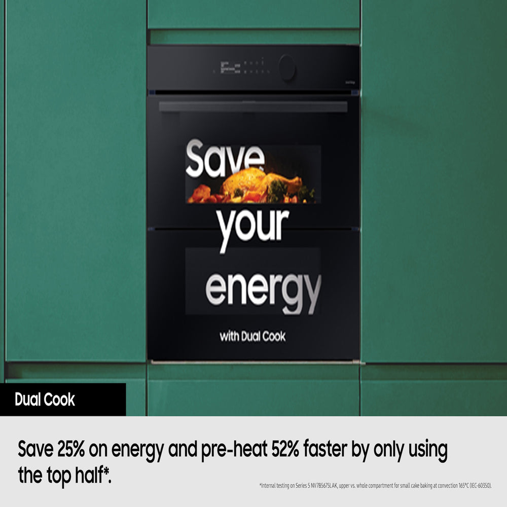 Dual Cook technology allows you to cook multiple dishes at different temperatures simultaneously — saving time and optimizing energy use. The combination of digital touch controls and intuitive knobs enhances user convenience, while the LED display makes monitoring settings easier.
