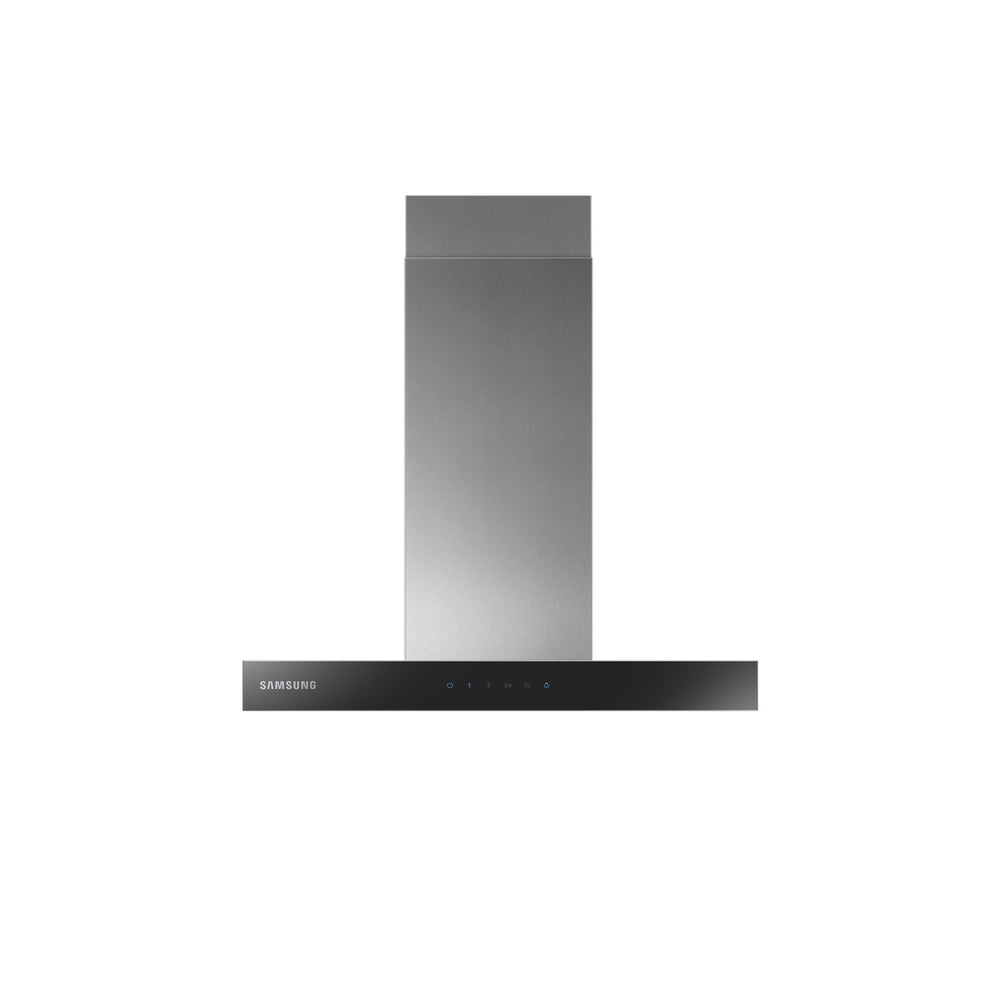 The Samsung NK24M5070BS wall mount cooker hood is designed to provide powerful ventilation and a modern aesthetic for your kitchen. With a maximum extraction rate of 531 m³/h and boost mode reaching up to 668 m³/h, it effectively removes smoke, grease, and odors during cooking. Its intuitive touch control panel with LED display allows easy adjustment of settings, while the four-speed levels offer flexibility depending on cooking intensity. Equipped with energy-efficient LED lighting, it ensures clear visibility over your cooktop. The washable aluminium filter captures grease efficiently and is easy to maintain, helping extend the life of the motor. With its sleek stainless steel and black glass finish, this cooker hood combines performance, durability, and contemporary design for everyday kitchen use.