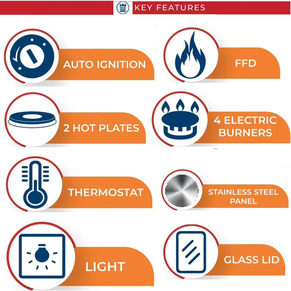 ✔ Flame failure safety system — automatic gas cut-off