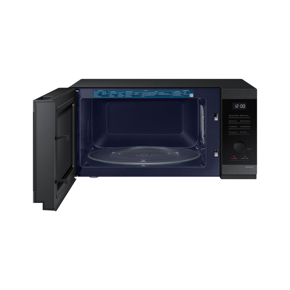 The Samsung MS40DG5504AGSG 40 L solo microwave oven combines spacious capacity, powerful performance, and user-friendly features to make daily cooking, reheating, and defrosting fast and convenient. With a large 40 L cavity and high output power, this microwave can easily accommodate family-sized dishes and larger cookware. The Power Defrost feature intelligently calculates defrosting time based on food type and weight, helping you prepare ingredients quickly while preserving nutrients. The durable CERAMIC INSIDE™ enamel interior is easy to clean and resists stains and scratches, and the sleek black stainless steel finish with a recessed handle enhances modern kitchen design. Intuitive tact and dial controls with an LED display make operation simple, and essential features like Eco Mode and child safety lock add convenience and peace of mind.